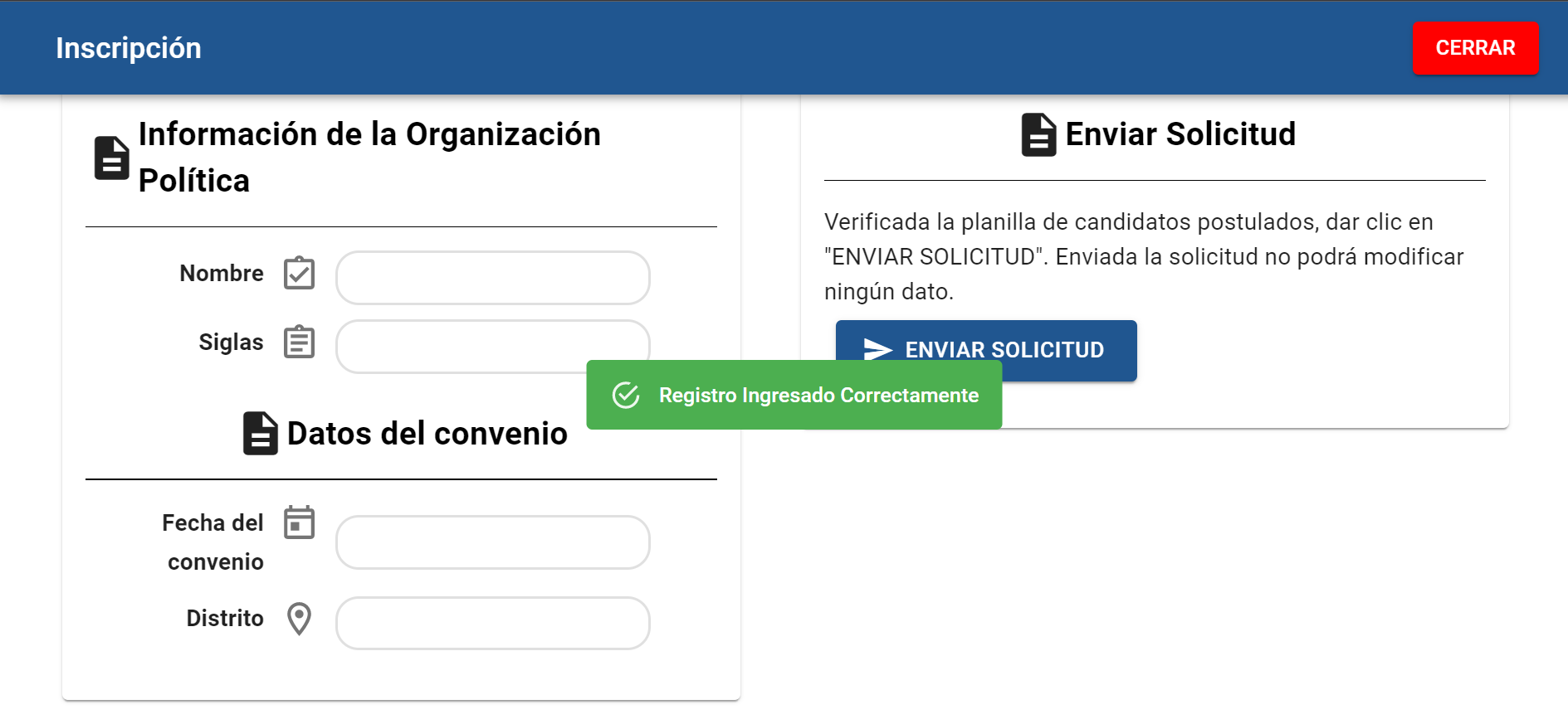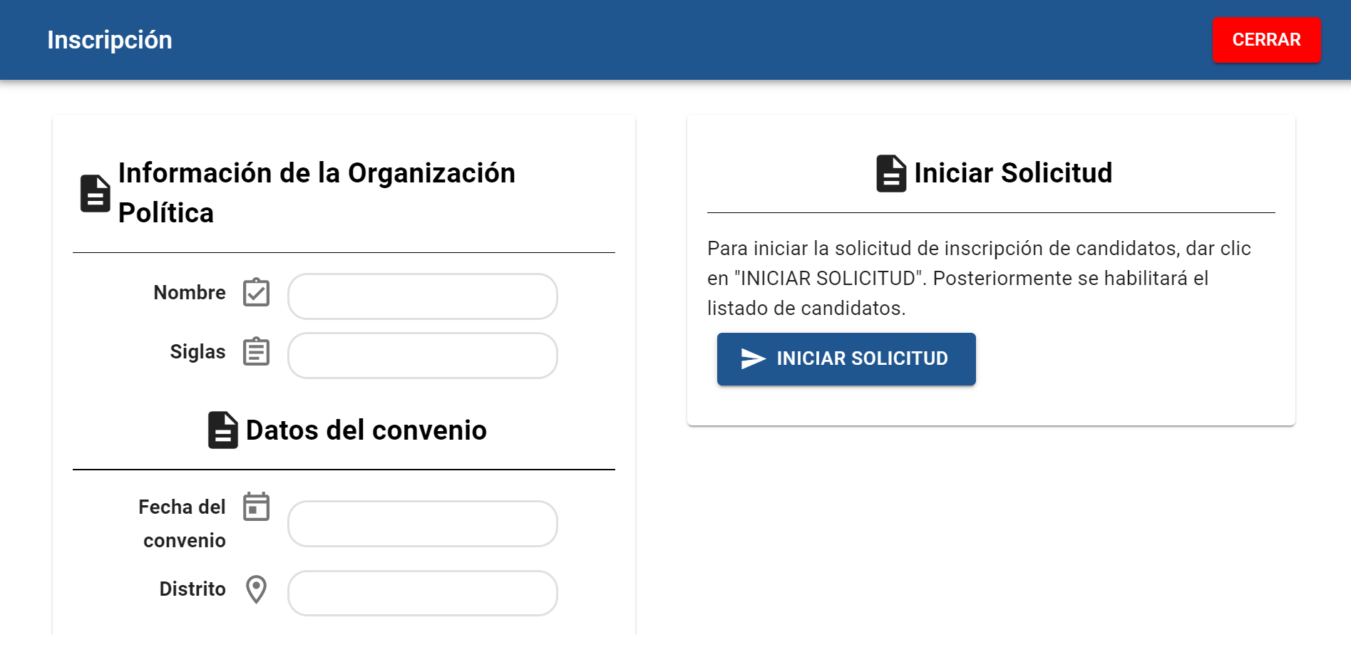 El sistema de inscripción de candidatos tiene como objetivo facilitar y reducir el tiempo para la solicitud e inscripción de los candidatos postulados en asamblea o sesión de comité, y poder así verificar con facilidad el proceso de la inscripción.