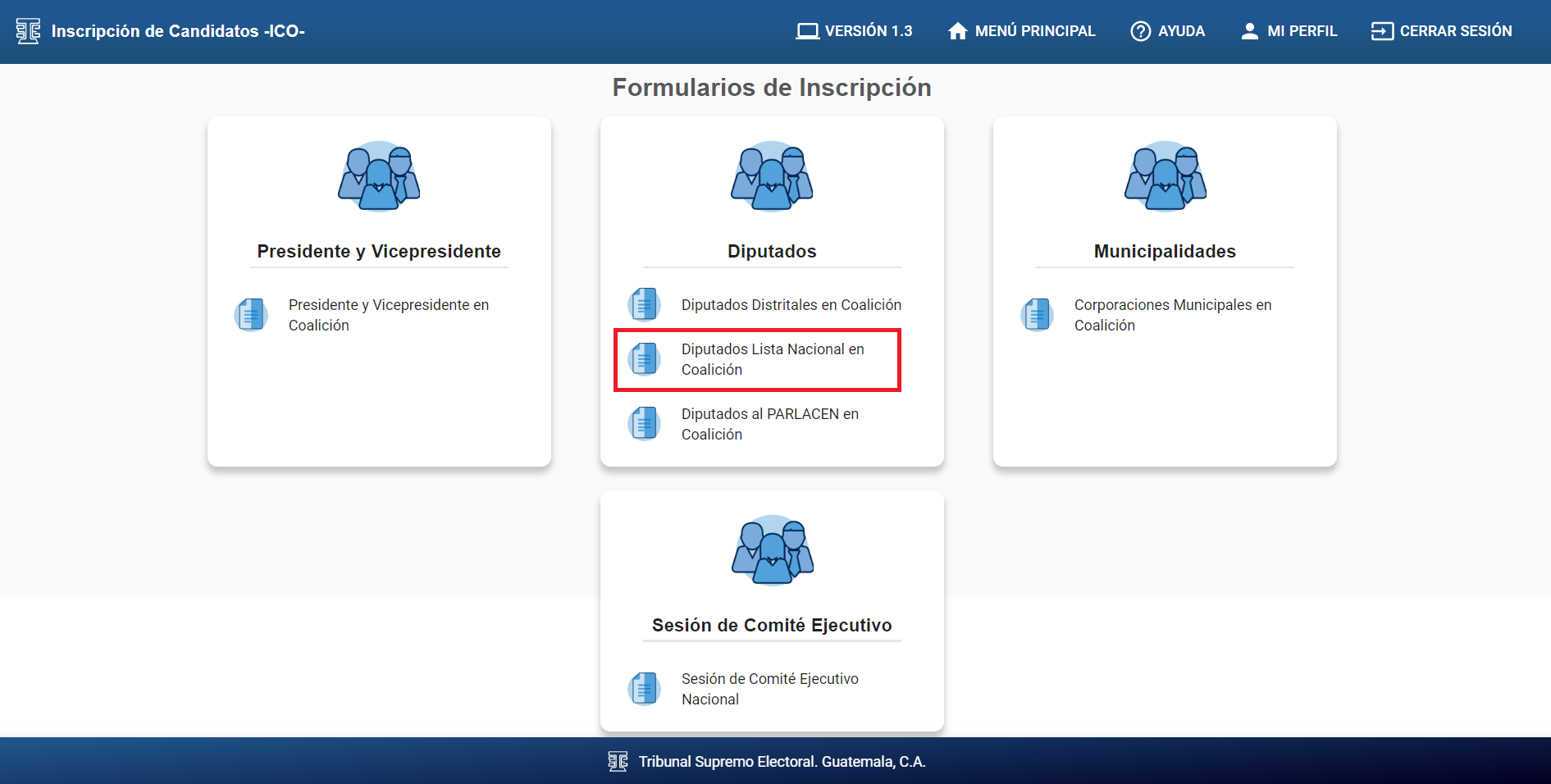 Seleccionar la opción de “Diputados Lista Nacional en Coalición”